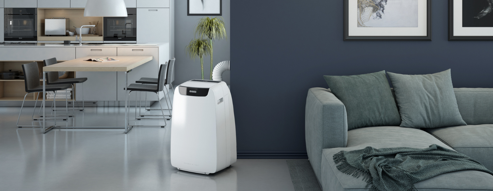 The super powerful portable air conditioner, up to 4,1 kW in class A, ensuring minimal environmental impact with R290 natural refrigerant gas. Equipped with a motorised auto-swing flap, it allows easy direction of the outgoing air, which has been previously treated by electrostatic (dust-proof) and activated carbon (effective against unpleasant odours) filters.